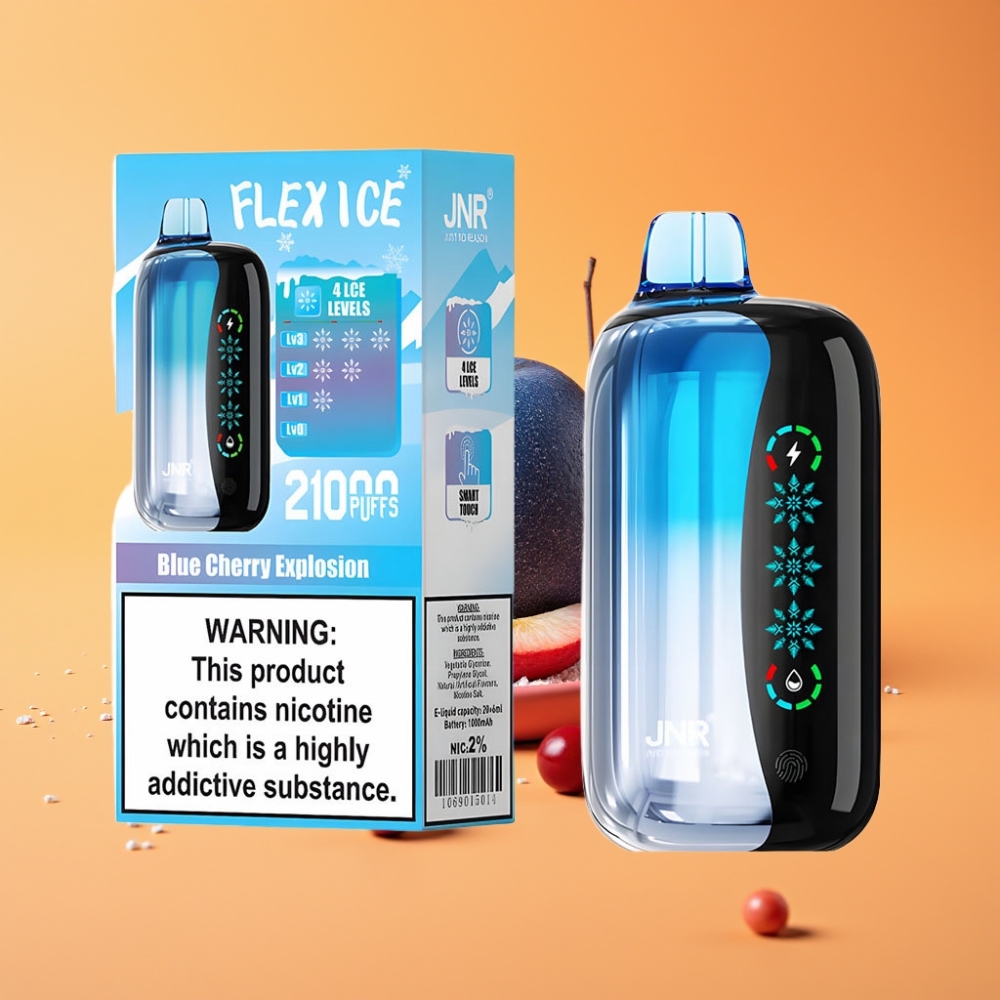 Denne engangs-vape fra JNR Flex Ice-serien kombinerer avanceret teknologi med brugerjustering for en optimal dampoplevelse. Produktet overholder alle relevante sikkerhedsstandarder.