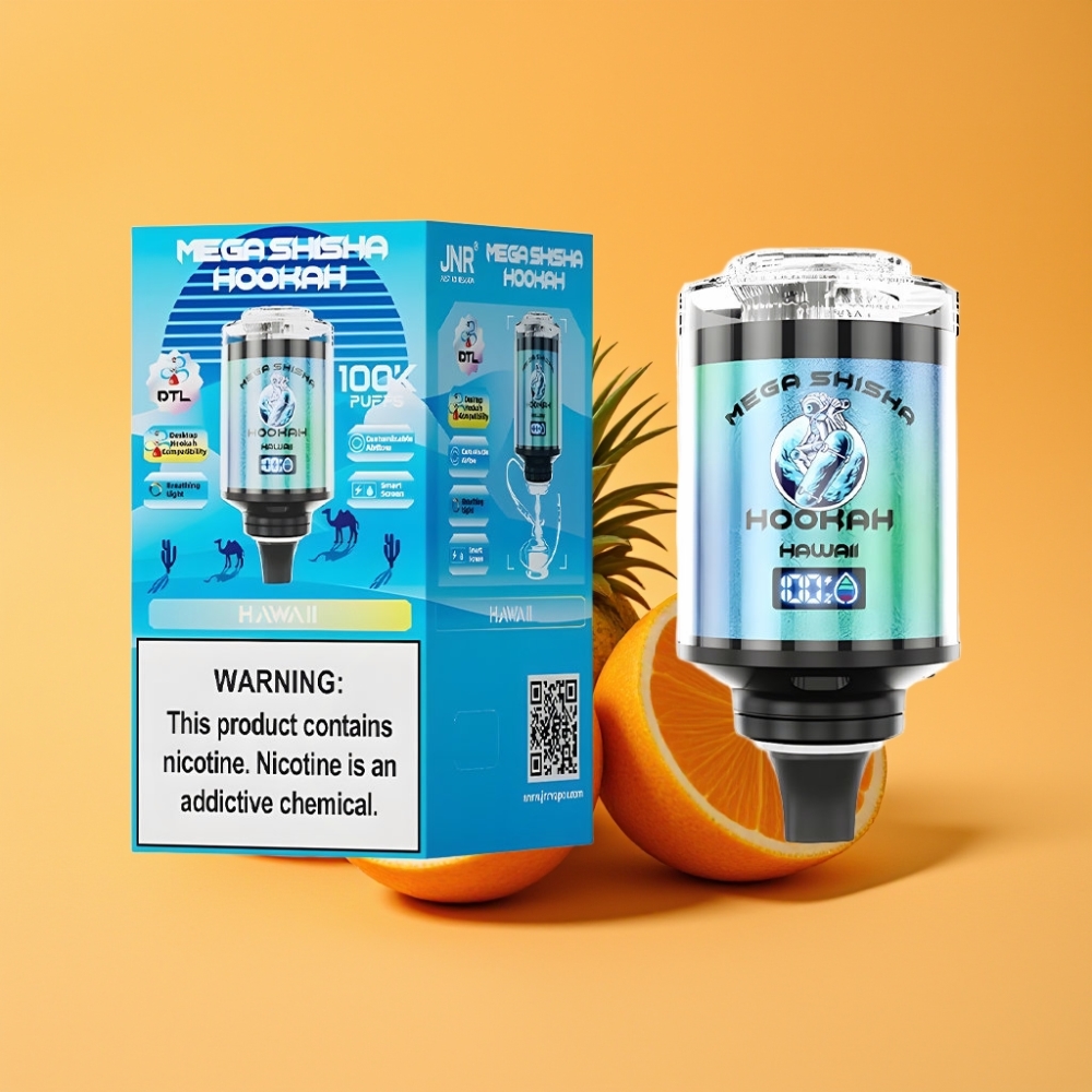 JNR Mega Shisha Hookah 100K Desktop Kompatibilitet Hawaii med 60ml e-Liquid og 2200mAh