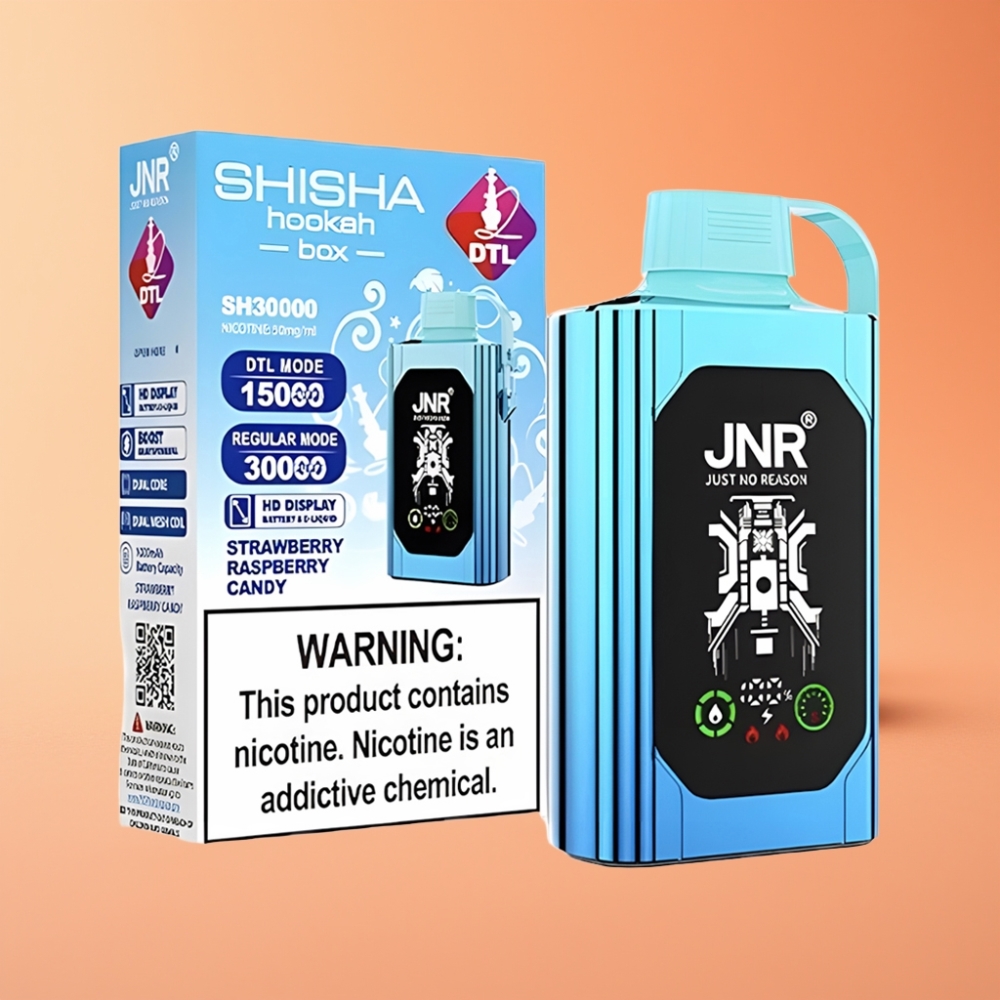 JNR Shisha Hookah Box 20500 Puffs Engangs Vape Jordbær Hindbær Candy & Type-C Hurtigopladning