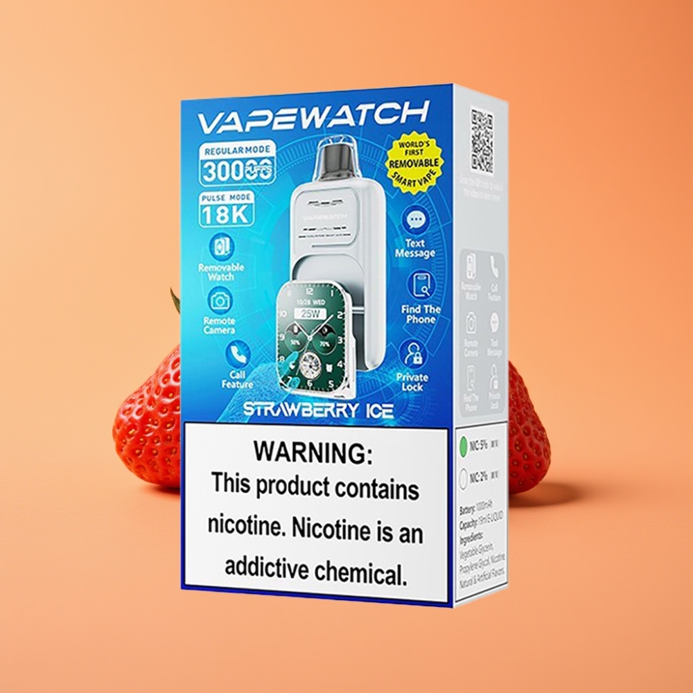 JNR VapeWatch 30000 Puffs Engangs Vape Jordbær Is med 1000mAh & Type-C