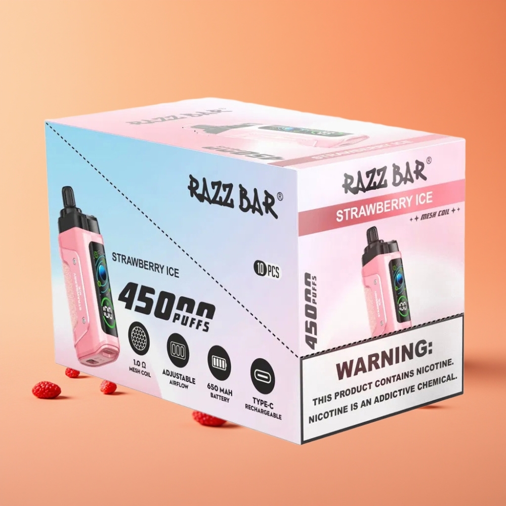 RAZZ BAR 45000 PUFFS overholder alle relevante sikkerhedsstandarder og er tilgængelig gennem pålidelige Denmark distributors. Den er fremstillet af højkvalitets-PC/PCTG-materialer for optimal holdbarhed.