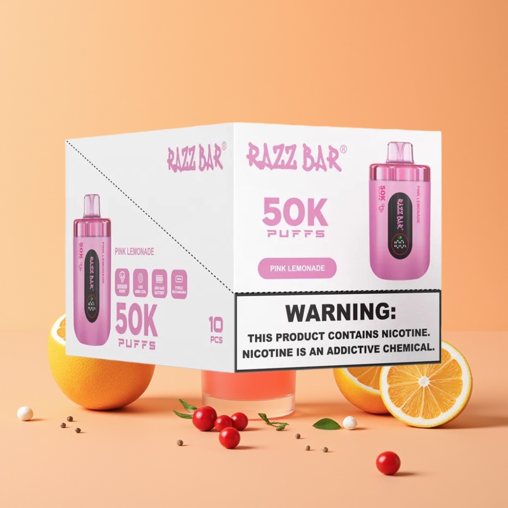 Razz Bar 50K Puffs Disposable Vape Lyserød Lemonade med 650 Mah Batteri